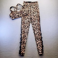 Victorias Secret Leopard Print Activewear Set Strappy Bra Mesh Lace Up Leggings